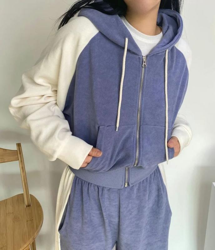 크롭 크롭후드집업 후드집업 크롭집업 배색집업 나그랑 캐주얼집업 데일리룩