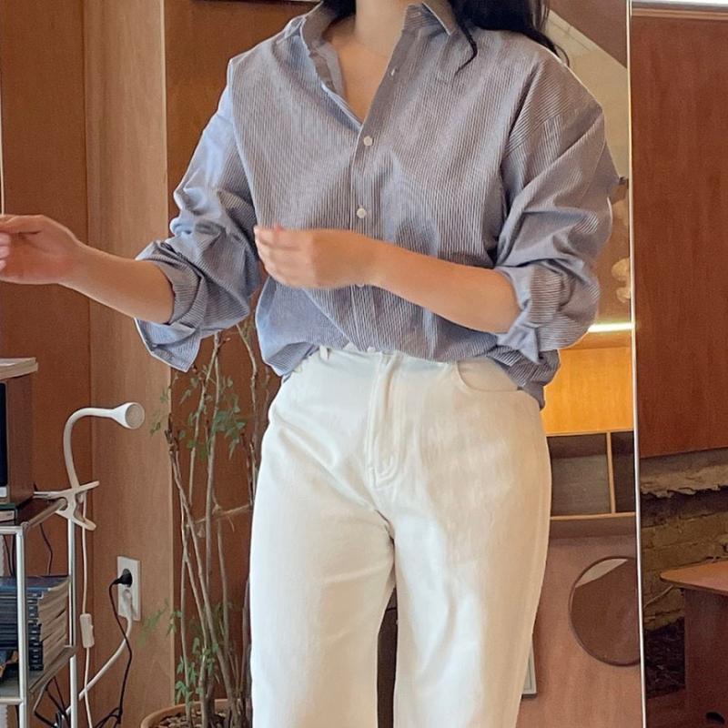 사계절 내내 함께 할 수 있는 베이직한 스트라이프셔츠예요 ! 오버핏 라인이라 클로징해서 여리하게 연출해도 좋고, 툭 걸쳐줘도 가볍고 ! 무엇보다 가격이 착해서 컬러별로 소장하셔도 부담없다는거 ❤️
