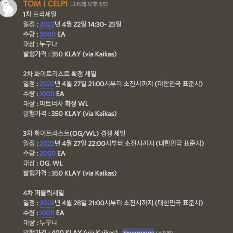 4월 27 오후 9시 부터 민팅 시작 .. 1초킷 가즈아