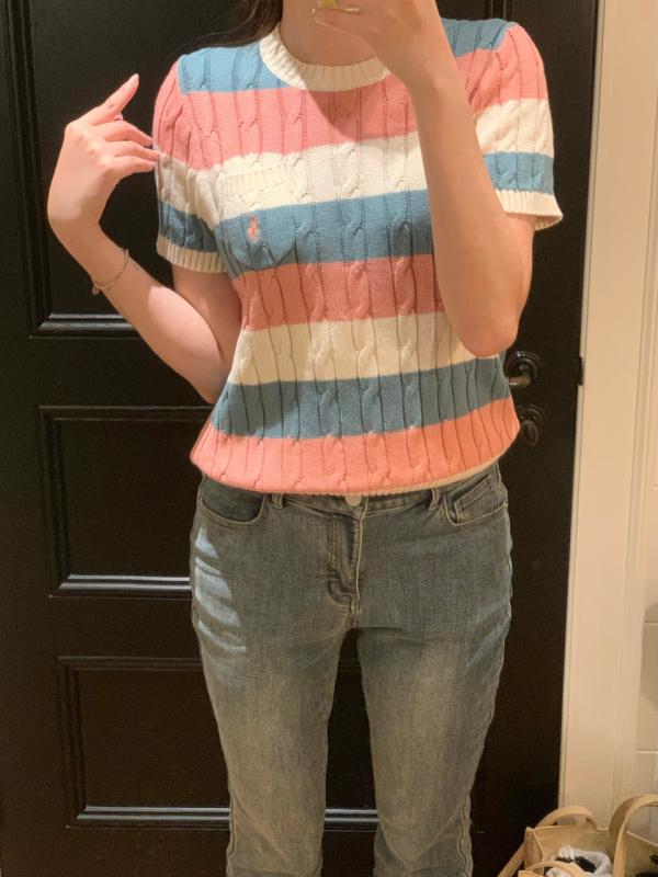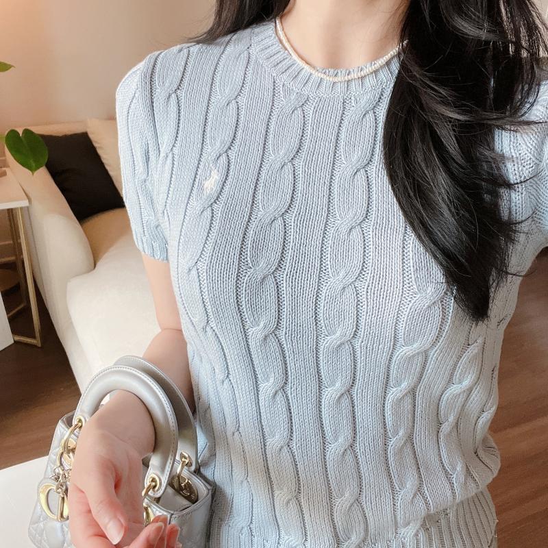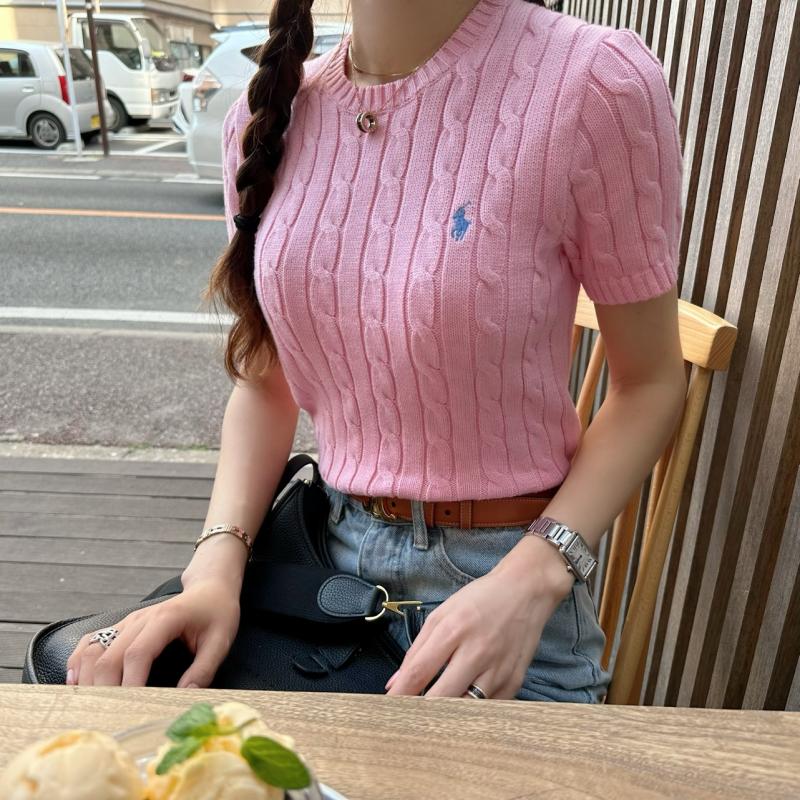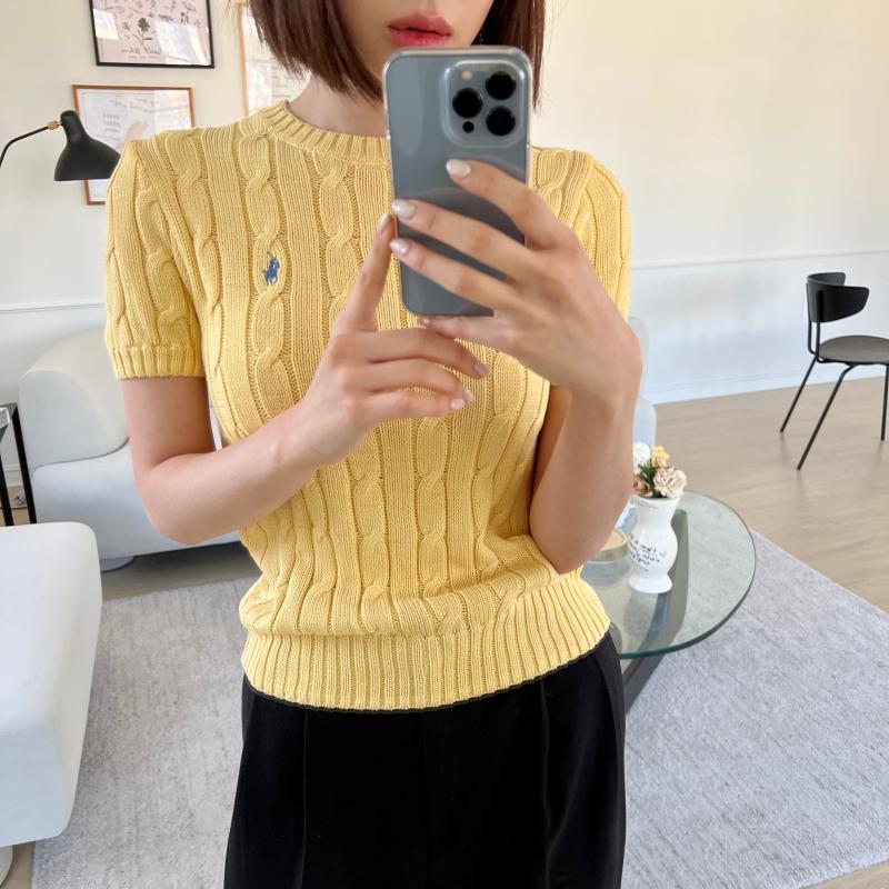 폴로 랄프로렌 여성 꽈배기 반팔 니트 스웨터