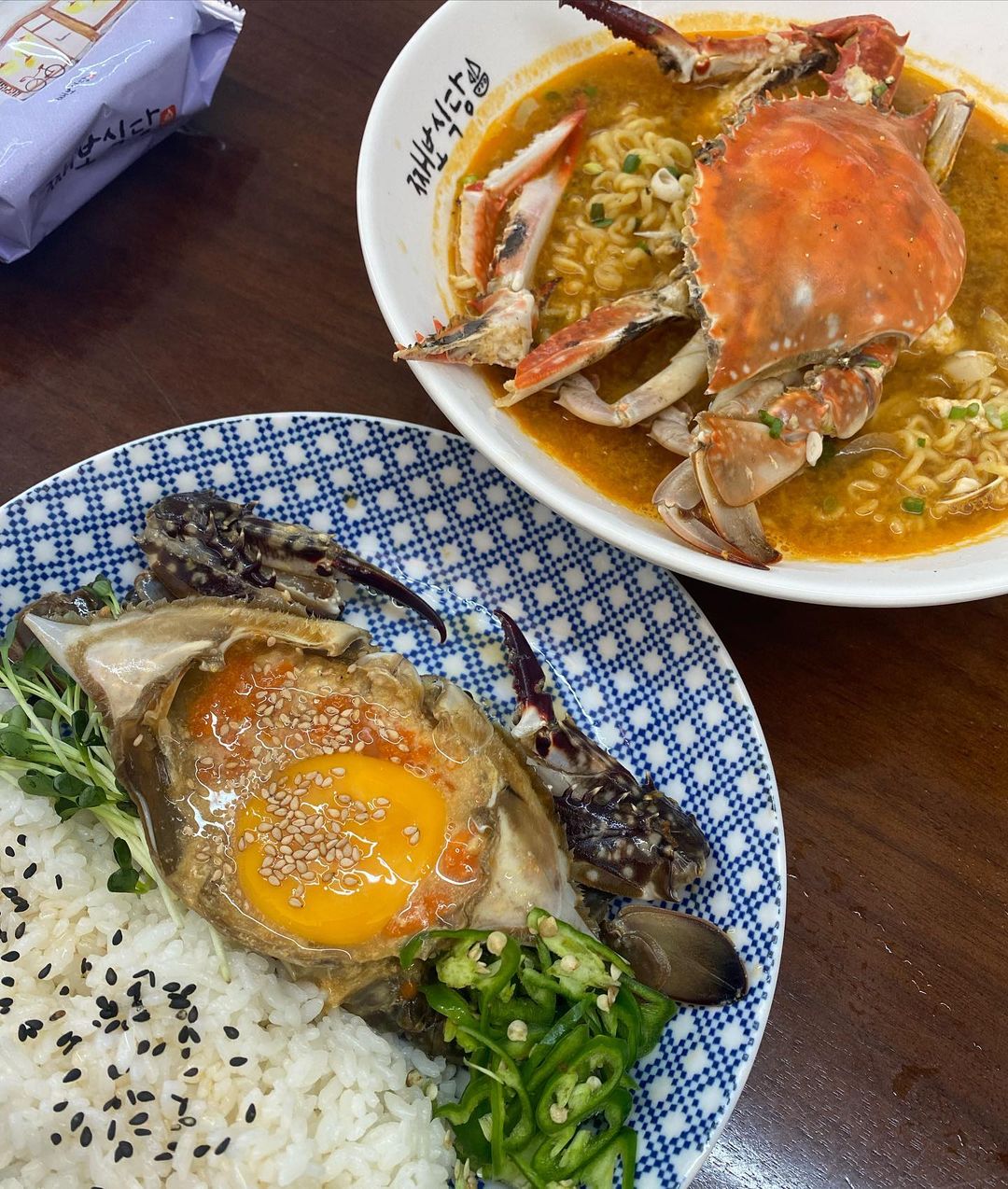 꽃게 한마리가 다들어간 라면도 함께 맛보길 추천할께유 >.<