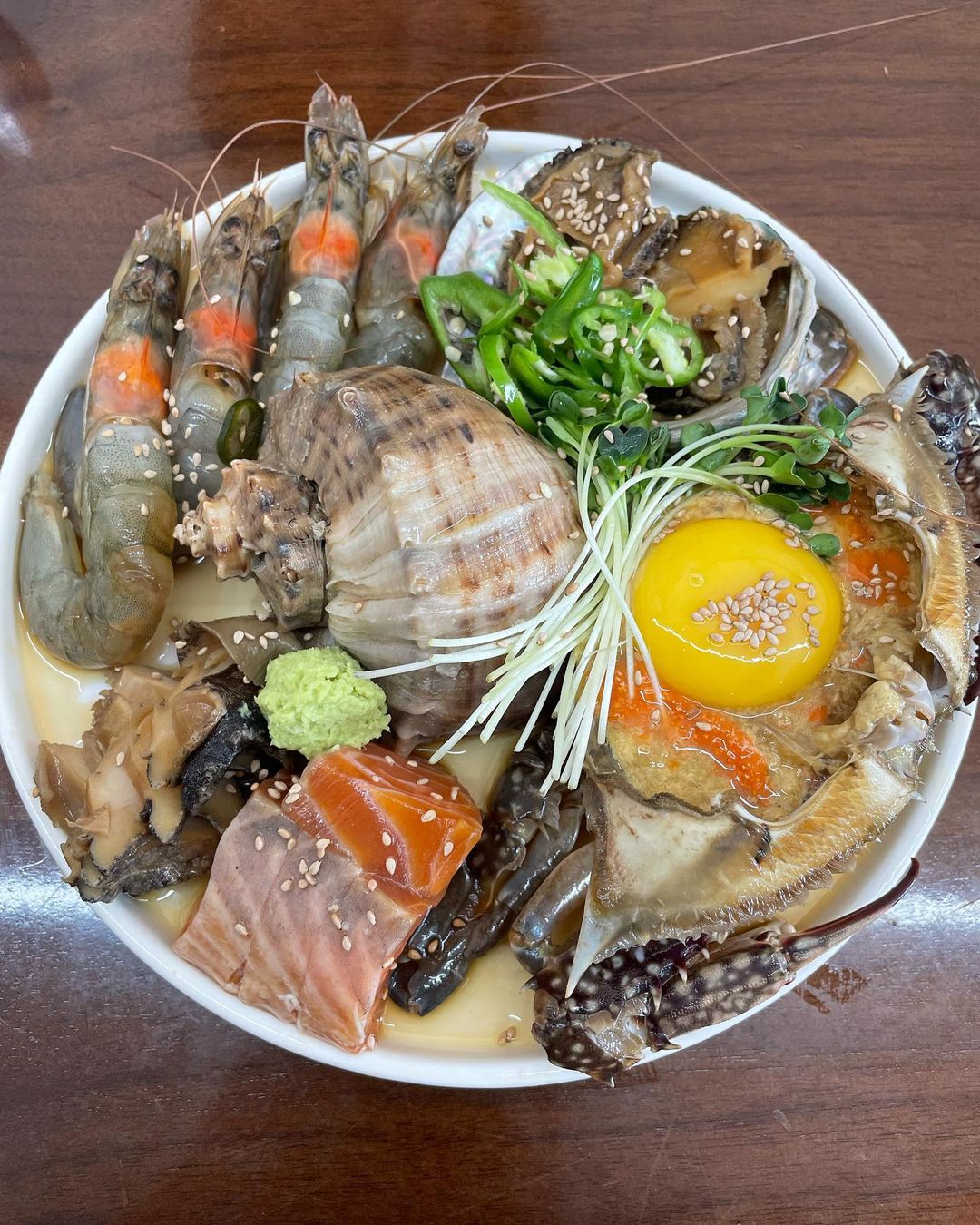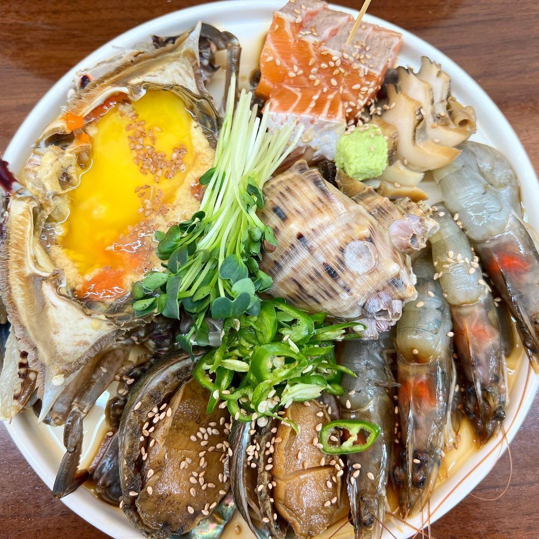 저희는 째보간장모둠 을 먹었는데요! 이 안에는 신선한 알이 꽉~찬 국내산암꽃게와 전복, 연어, 새우와 같은 다양한 해산물들이 들어있답니다 ㅎㅎ