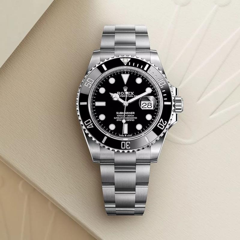 다이버 워치의 대명사. 오이스터 브레슬릿, 블랙, 41mm 케이스, 오이스터스틸 소재의 롤렉스 Submariner Date. Rolex Submariner