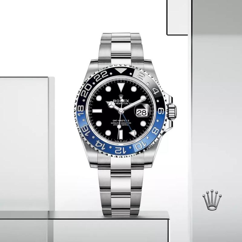 코스모폴리탄을 위한 시계. 오이스터 브레슬릿, 블랙, 40mm 케이스, 오이스터스틸 소재의 롤렉스 GMT-Master II. Rolex GMTMasterII