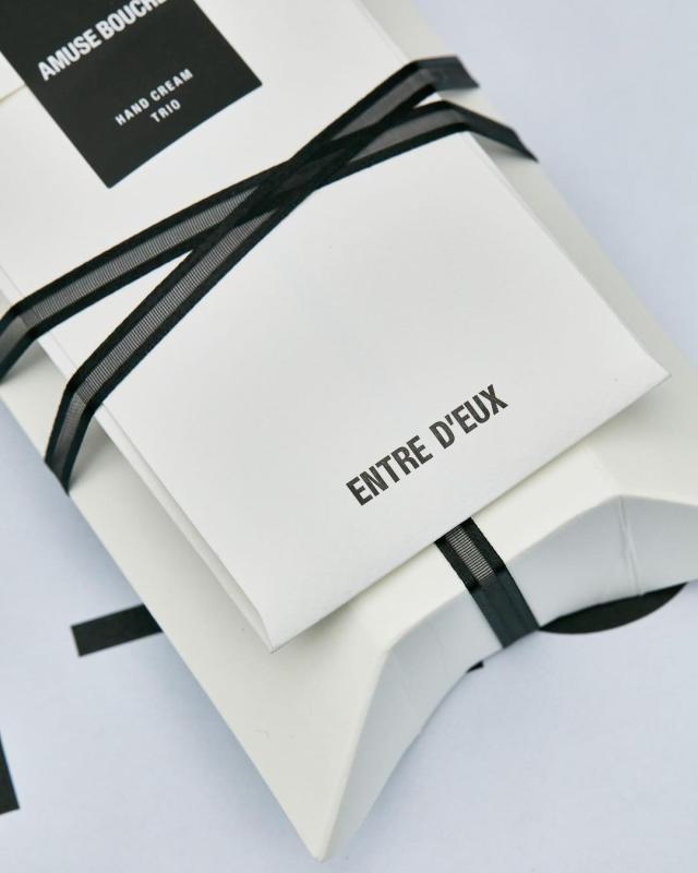 엉트르두는 이러한 EENK 의 컬렉션을 위해 엉트르두의 아이코닉한 향을 가장 대표적으로 느낄수 있는 퍼퓸 핸드크림과 오 드 퍼퓸 트래블 사이즈를 이번 EENK의 콜렉션을 상징하는 특별한 선물포장과 함께 선보였습니다.
