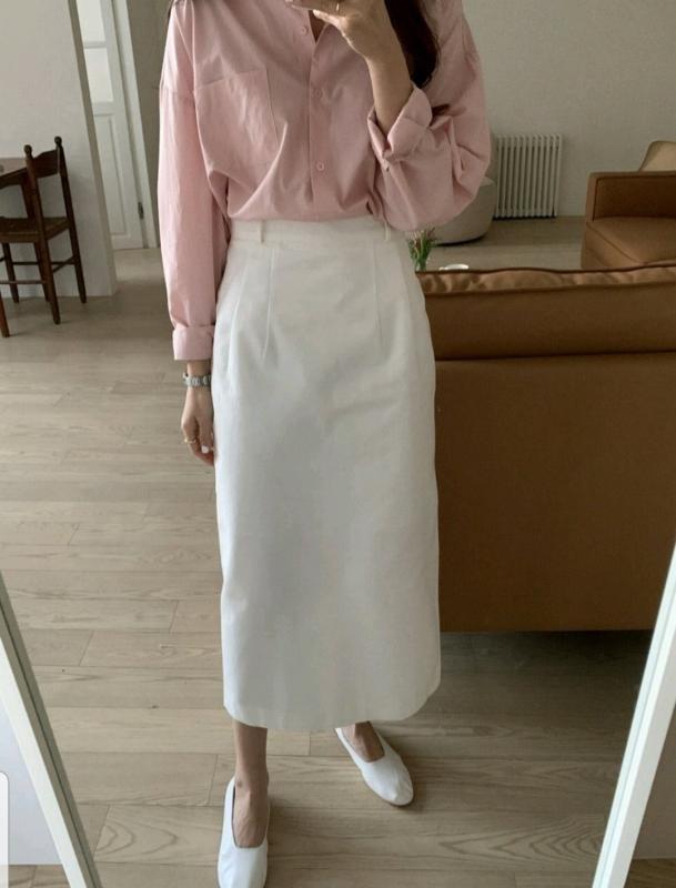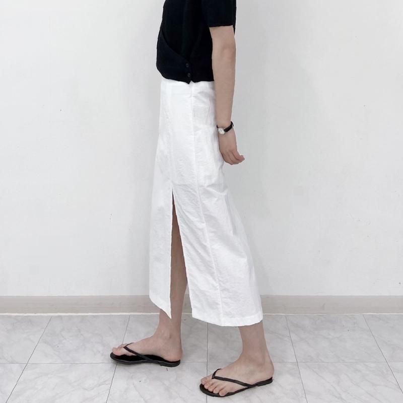 백 슬릿 린넨 스커트