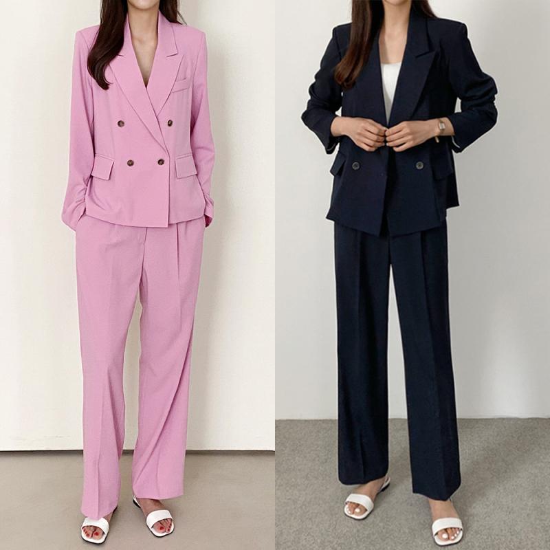 빅사이즈 정장 재킷&와이드 레그 반바지 세트