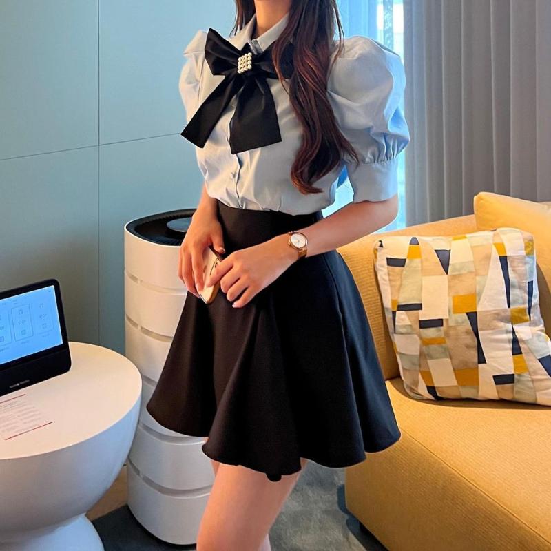 왕리본,사각진주브로츠 전부다 세트!!! 블라우스 자체원단도 넘 좋구용♥️ 믿고살수있는 [지니]💜💜