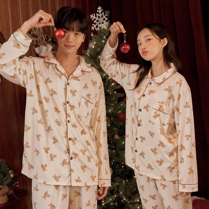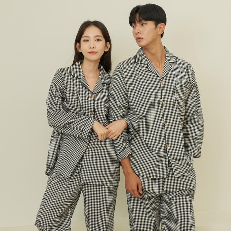 도씨 클린 실크핏 반팔 카라 커플 잠옷 세트