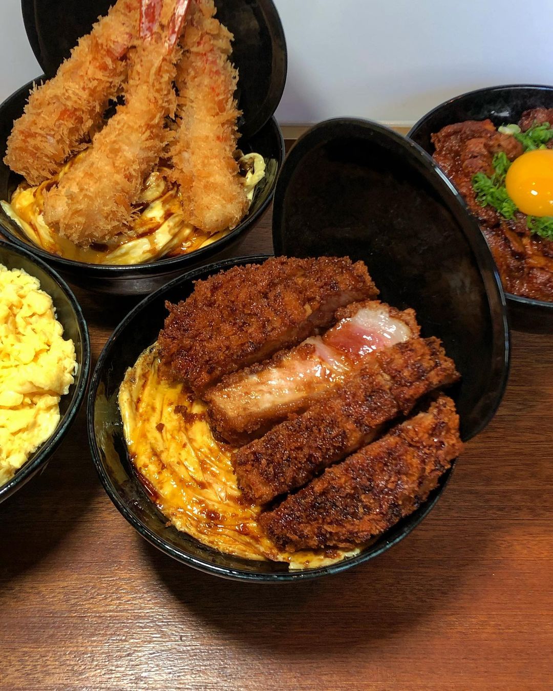민스된 고기랑 스크럼블에그가 올라간 쇼가소보로동이랑 아주 은은하게 마라향이 살짝쿵 느껴지는 제육이 올라간 가라이규동이랑 엄청 큰 킹새우가 올라간 에비타레카츠동도 다 맛있어요🤤