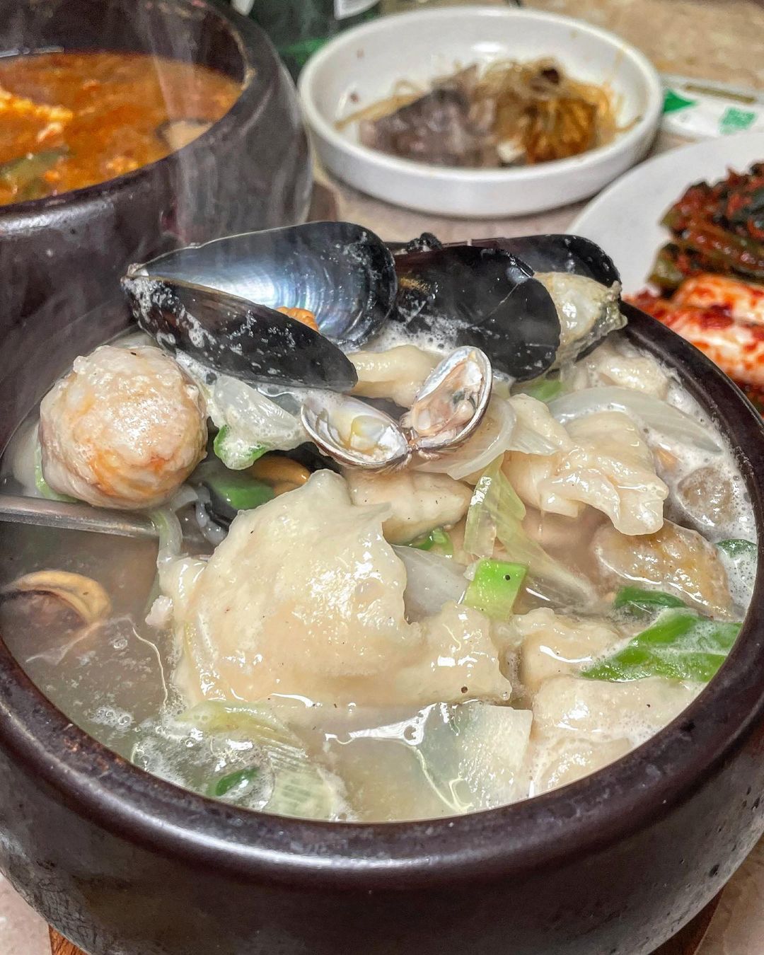투박 쫀득 수제비의 감도도 너무 좋고 적당히 전분기 있는 국물에 홍합 미더덕 건새우 넉넉히 들어간 빨간 국물보다 더 얼큰한 수제비에 맛난 김치와 함께 하니 끝👍👍