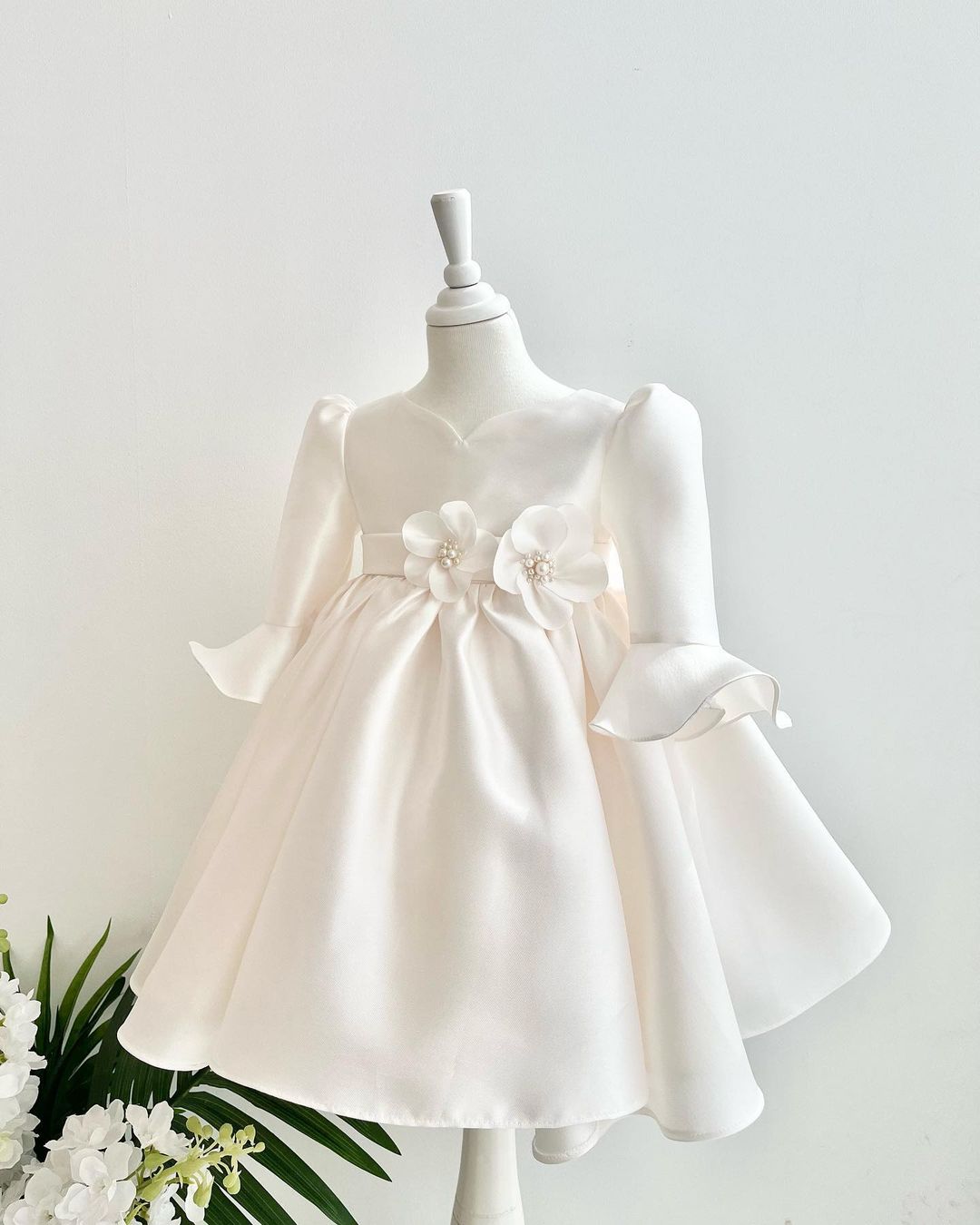 크림 미카도에 긴팔로 제작된 드레스에요.⠀